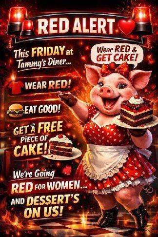To raise awareness for American Heart Month, Tammy’s Diner is encouraging customers to wear red on Friday. Those who don the color for National Wear…
